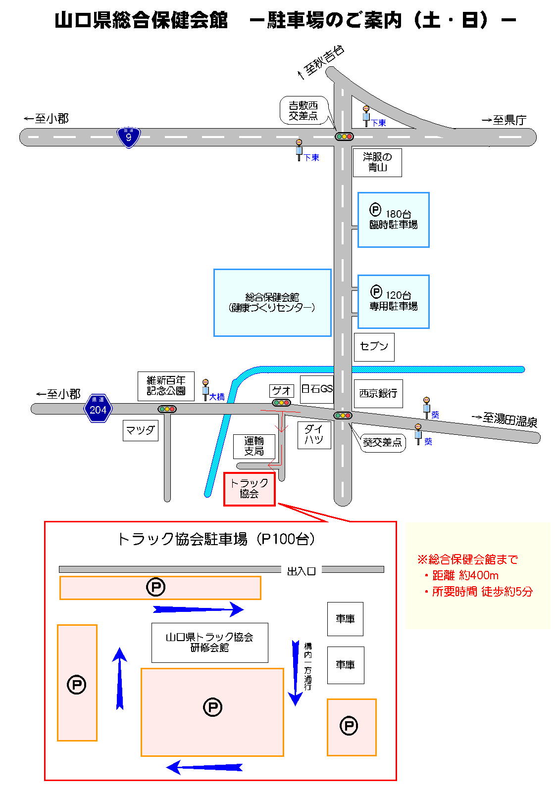 駐車場に関しましては総合保健会館の敷地内に駐車しないようにしてください。